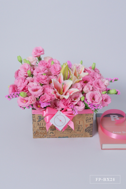 1 Dozen Stems of Lisianthus with Stargazer Lily in a Box